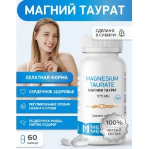Магния тауратТаурат магния (Magnesium Taurate) представляет собой хелат магния, связанный с аминокислотой таурином. Таурин помогает поддерживать здоровье сердечно-сосудистой системы, поэтому таурат магния — хороший выбор для тех, кто ищет как добавку магния, так и добавку для поддержки здоровья сердца. Предпочтительное назначение этой формы при метаболических нарушениях: патологии сердечно-сосудистой системы, инсулинорезистентности, избыточном весе и ожирении, а также для поддержания эндогенной и экзогенной детоксикации. Рекомендации по применению: по 1-2 капсулы в день во время еды. Масса капсулы 690мг±10%. Рекомендации по применению: по 1-2 капсулы в день во время еды. Противопоказания: индивидуальная непереносимость компонентов продукта, беременность, кормление грудью. Без вредных компонентов в составе.