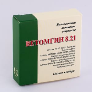 Бактерии, используемые для изготовления препарата ВЕТОМГИН 8.21, отличаются способностью к быстрой колонизации репродуктивных органов (вагины, шейки матки, цервикального канала). Размножаясь, они выделяют в окружающую среду специфические антибиотики, ферменты, другие биологически активные вещества. Следствием этого процесса в вагине и прилегающих репродуктивных органах нормализуется микробный состав до видоспецифического, очищаются их стенки пеной, образующейся при контакте суппозитория с влажной средой репродуктивных органов, что способствует выводу гнойного, некротического содержимого вагины и матки, плёнок фибрина без проведения специального туалета, что, соответственно, обеспечивает сокращение времени лечения, прекращение воспалительных процессов и быстрое заживление травмированных слизистых оболочек, что, в свою очередь, увеличивает фагоцитарную активность крови и нормализует работу местного иммунитета репродуктивных органов.
